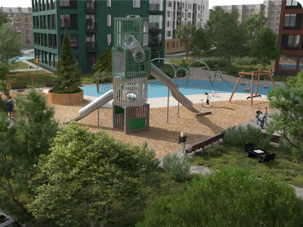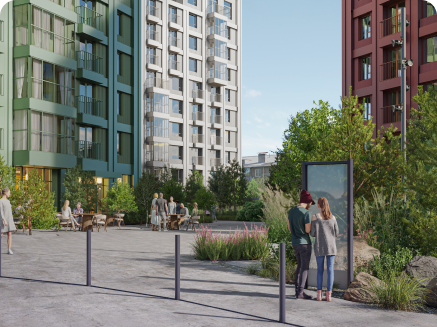 Общедоступная, но зонированная территория с местами тихого отдыха, детскими площадками для разных возрастов, и зоной воркаут