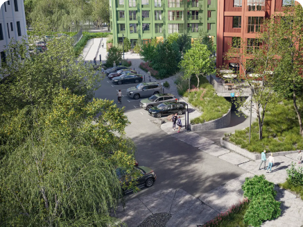 Продуманная интеграция в рельеф позволит создать безбарьерную среду и удобные пешеходные маршруты